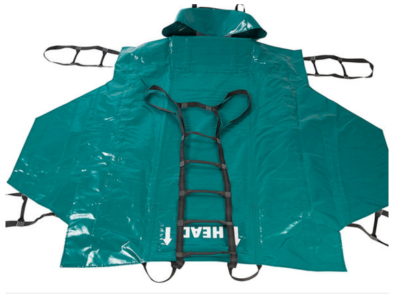 El EvacMat bariátrica tiene corchetes cruzados codificados en color que mantienen el individuo firmemente encofrado y el peso corporal mantenido en su lugar, haciendo el movimiento del EvacMat más estable. Tiene una base resbaladiza resistente que permite que se mueva fácilmente sobre superficies interiores y al aire libre para la evacuación horizontal o vertical de individuos bariatric y grandes.